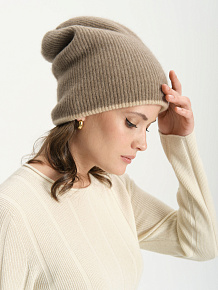 Шапка кашемировая двухсторонняя бежевая-капучино