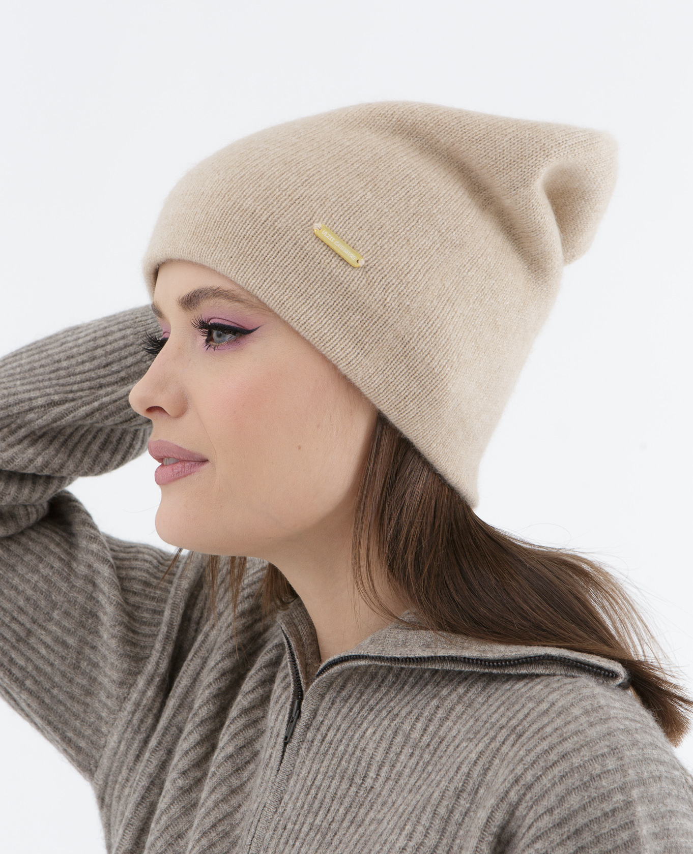 Шапка кашемировая двойная UL бежевая