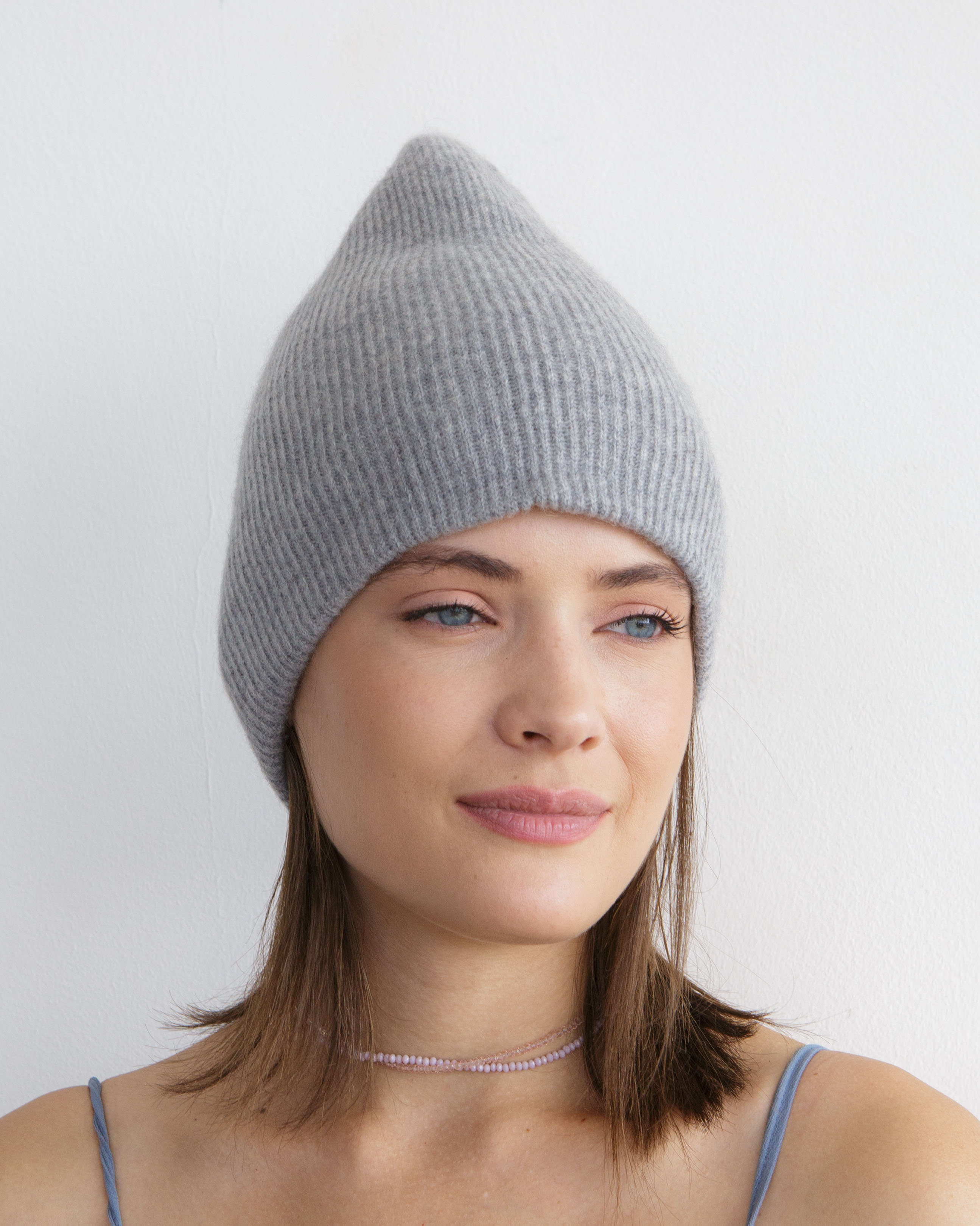 Шапка кашемировая двойная серо-голубая