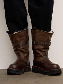 Модель с высоким голенищем и лаконичным силуэтом. Сочетание гладкой кожи и вставок придаёт обуви выразительный и современный вид.