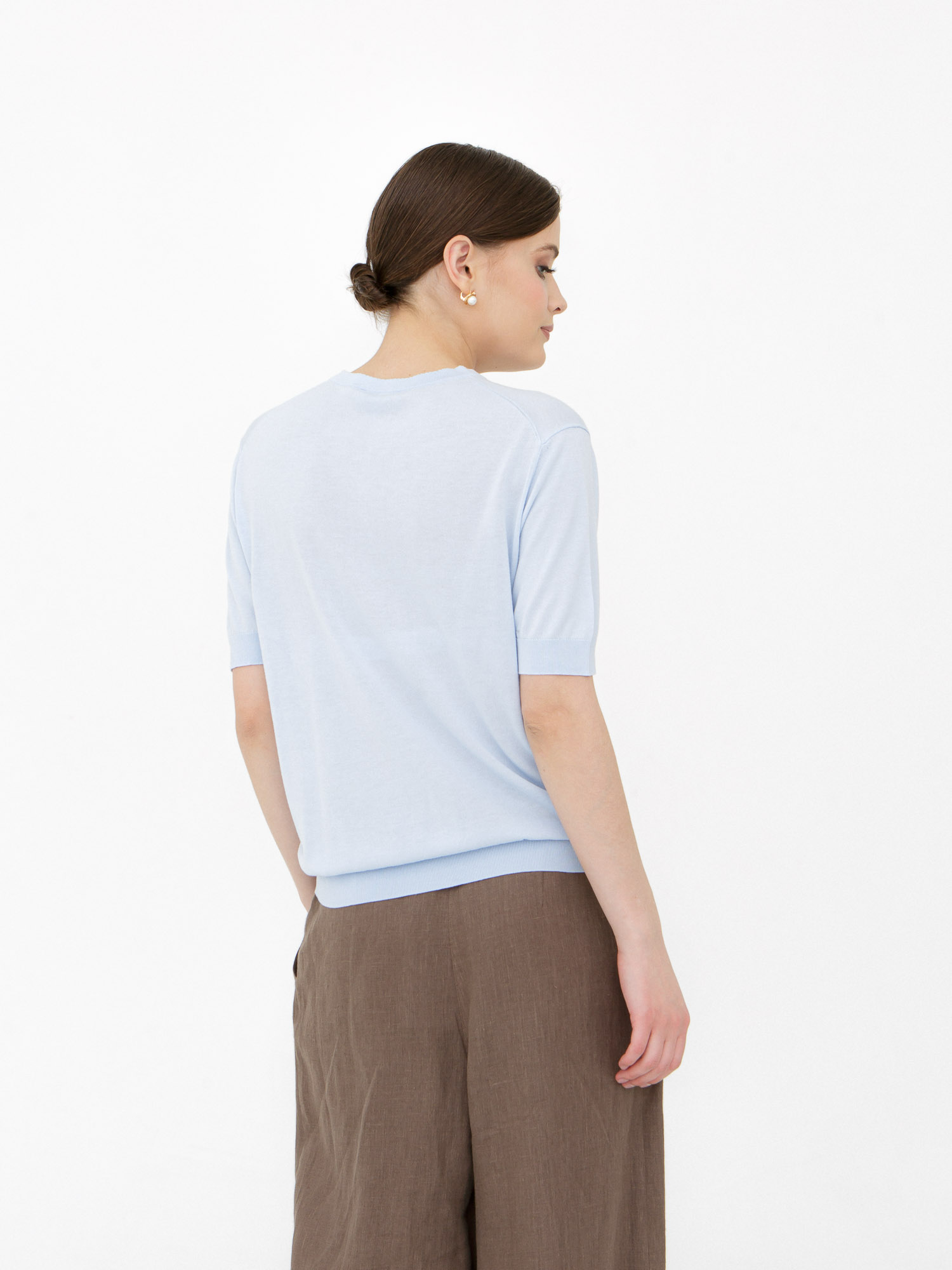Состав очень интересный - лиоцелл, лакрица, хлопок - качество натуральных тканей чувствуется сразу. Ткань дышит, не электризуется, очень приятная к телу. Голубой цвет нежный