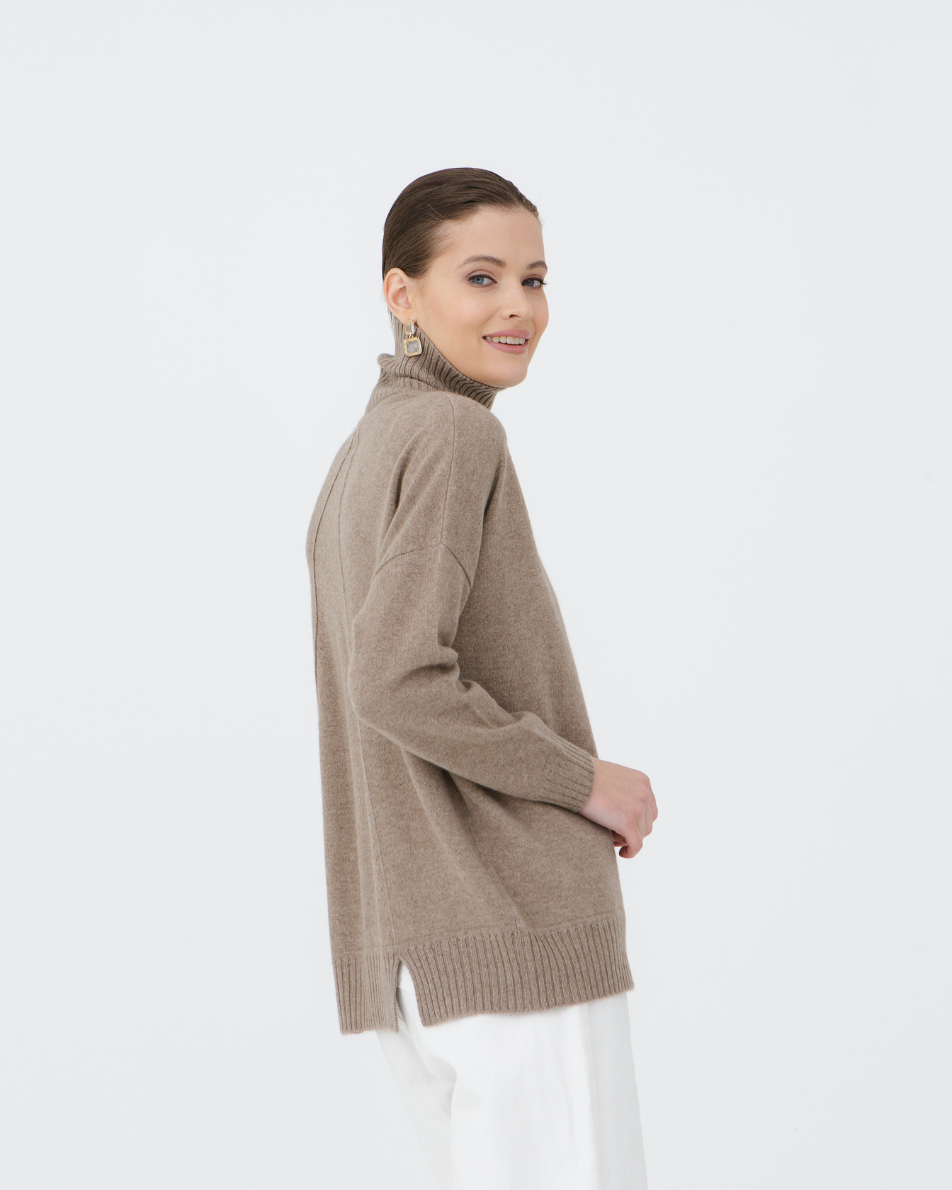 Свободный прямой силуэт обеспечивает комфортную посадку и свободу движений. Мягкий кашемир приятно прилегает к телу и дарит ощущение лёгкого тепла.
