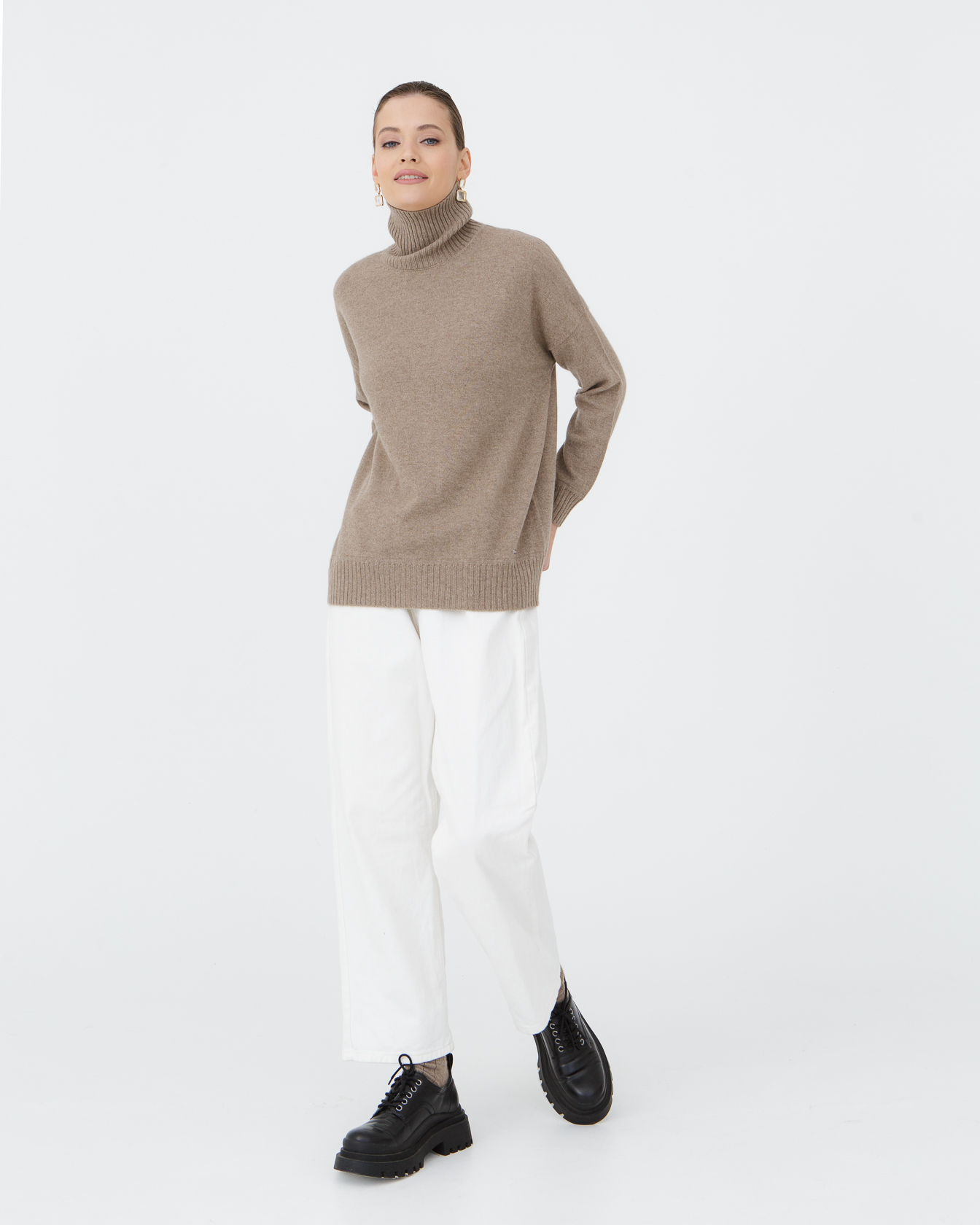 Капучино — тёплый и благородный оттенок, который подчёркивает естественную фактуру кашемира и легко сочетается с базовой палитрой гардероба.